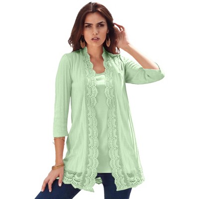 Catherines Petite Shadow Stripe Cardigan - 1XWP, Waterfall