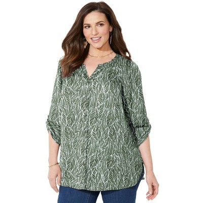 Catherines Petite Suprema Short Sleeve V-Neck Tee - 0XWP, Olive Green Watercolor Floral