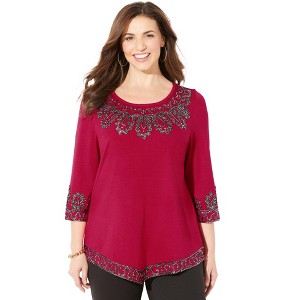 Catherines Pointed Hem Embroidered Top - 1 of 4