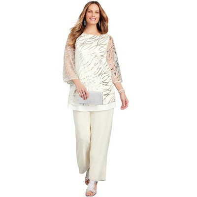 Catherines Sequin Chiffon Duet Blouse - 4X, Rich Grey