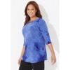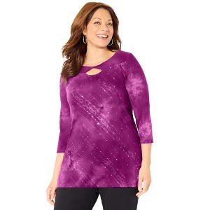 This soft, everyday tee looks instantly special with scattered sequins, Fun openwork at the neckline, and peached tie-dye print. Wear it with your favorite jeans or casual pants, and skip the top layer. This top is meant to shine on its own..