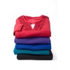 - FIT: Relaxed, easy silhouette. Scoop neckline with inset. 3/4 sleeves.