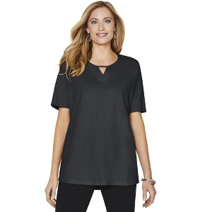 From our classic Suprema collection, this flattering tee updates your look with its pleated design at the cutout neck. You'll love the added detail to take your favorite capris and pants to the next level.FABRIC: Our famous Suprema is premium quality cotton loved for its stretch and durability. Soft to the touch, the fabric is designed to retain its shape and color wash after wash.FIT: An easy, comfortable design that skims the body without clinging. Scoop neck with cutout. Short sleeves..