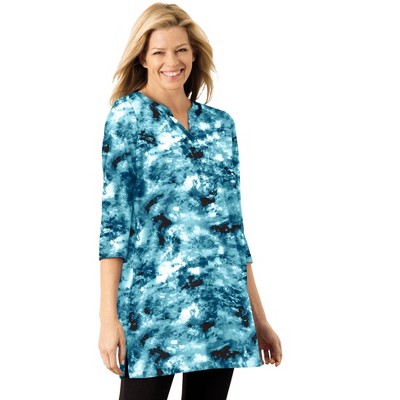A delightful swingy silhouette makes this waffle swing tunic an instant closet staple. Featuring a flattering V-neckline, this touchable waffle knit top elongates your shape courtesy of princess seams. Crochet applique detail at the neckline adds a touch of feminine flair to this breezy style. Pair it with leggings or denim for an effortlessly stylish look..