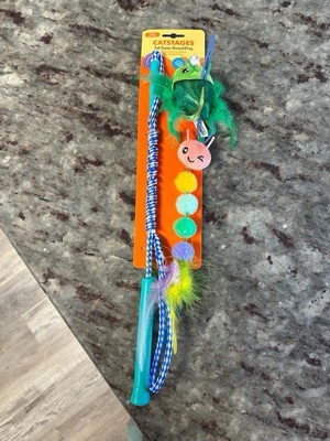 [This review was collected as part of a promotion.] This toy withstood the pulling from my toddler twins which was quite impressive to me as our last toy this style was destroyed within days. Our cat loves chasing trailing toys like this, the puff balls with feathers on the end was a win.