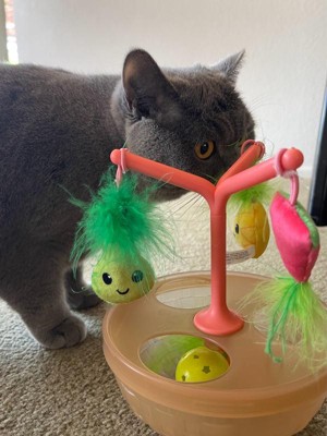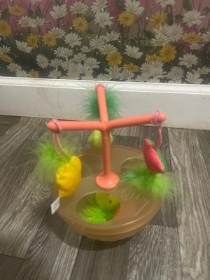 [This review was collected as part of a promotion.] Cute little toy with multiple elements .The little hanging fruits are adorable plus side that it wobbles my kitties loved it and started playing with it right away but it didn’t last long . They got either got bored of it or not sure but they aren’t really interested in it no more .
