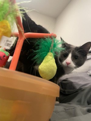 [This review was collected as part of a promotion.] This is one of the BEST cat toys , my kitten plays with it all day long ! If your cat loves to “hunt” and play , this is a must buy for your fur baby! The bowl wobbles making the fruit hunt a little more challenging :) Your cats going to go crazy once it gets ahold of the catnip fruit 😍🍀