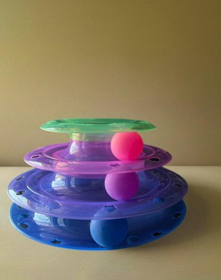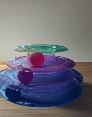 - Engaging cat ball track toy that'll keep your cat or kitten entertained; swat, bat, and chase the colorful balls around three levels for rolling fun and to stimulate natural hunting instincts