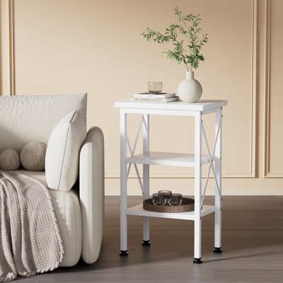 Product Name: CAVINAS 1PC Modern Square End Table with Tempered Glass Tabletop & 2-Tier Shelf Side Table with Metal Legs Coffee Table for Living Room,Bedroom,White