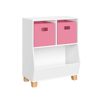 CAVINAS 2-Tier Kids Bookshelf with 5 Cubbies,Open Shelf Bookcase with Storage Bins,Book Shelf with Pine Legs,Book Shelves for Bedroom,Playroom,White