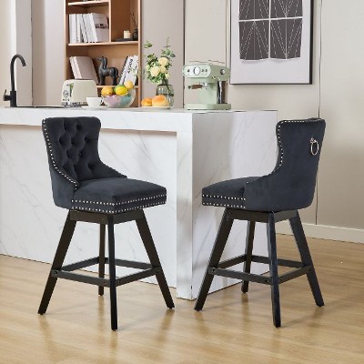 Elevate your dining or entertainment space with this Bar Stools Set of 2. Designed with a 360-degree swivel feature, these stools offer freedom of movement and convenience, perfect for kitchen counters, bars, or dining areas. The PVC cushioned seat adds comfort for extended sitting, while the wooden legs provide stability and durability. With a 26" height, these stools are suitable for counter-height surfaces, blending seamlessly with modern or classic home decor. Whether you need extra seating for a dinner party or a comfortable spot for casual meals, these stools bring both style and function to your space.