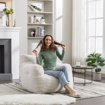 CAVINAS 27.6" W Modern Accent Chair with High Backrest, Living Room Lounge Arm Chair, Rocking Chair with 2 Side Pocket -Ivory