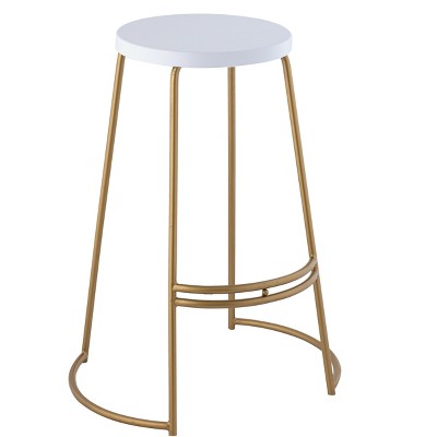 CAVINAS 28.75 inch Bar Stools Set of 2,Velvet Upholstered Bar Chairs with Golden Frame & Footrests for Kitchen Island,White