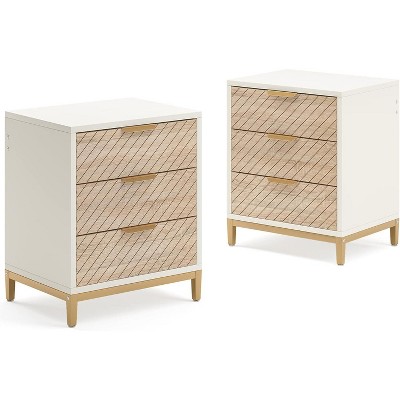 CAVINAS 2PCS Modern Rustic Nightstand with 2 Fabric Drawers Bedside Table with Metal Frame & Wood Top Sturdy Night Stand for Bedroom,Living Room,Brown