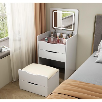 Product Name: CAVINAS 3 in 1 with Open Top Mirror Vanity Mirror Visible Glass Table Top Compact Vanity Modern Mini Vanity for Bedroom, White