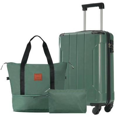 CAVINAS 3-Piece ABS Luggage Set(20/24/28), Lightweight Hardside Suitcase with Spinner Wheels and TSA Lock for Vacation, Business Travel, Green