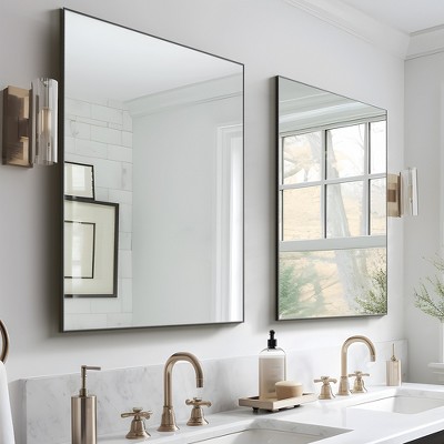 CAVINAS 36x36 Inch Rectangle Bathroom Mirror,Modern Metal Frame Vanity Mirror,Wall Mirror with Anti-Fog Coating,Bathroom and Living Room Decor,Black