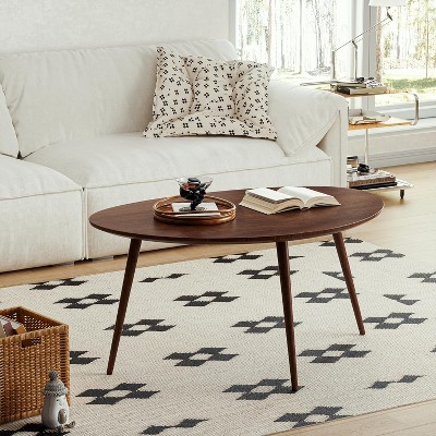 CAVINAS 39.2" Modern Coffee Table,Oval Accent Table for Living Room,Wooden Cocktail Table,Elegant Oriental Tea Table,Home Decor,220lbs Capacity,Black