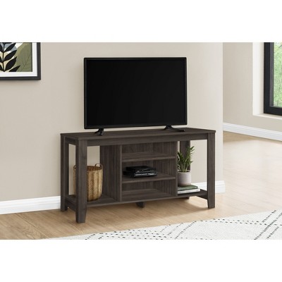 The TV cabinet provides multiple open compartments that can be used to store DVDs, books, electronic devices, decorations, etc., increasing the storage space in the living room.