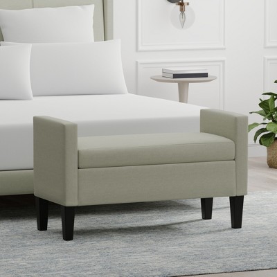 CAVINAS 43"L Modern Oval End-of-Bed Storage Ottoman Bench with Safety Hinge,Soft Teddy Fabric Ottoman for Seating,Footrest&Storage,Orange