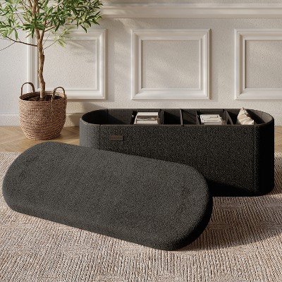 CAVINAS 43" Storage Ottoman Bench,Synthetic Leather Storage Bench with Thicker Foam Padded Seat,Foldable Ottoman for Living Room,Entryway,Black