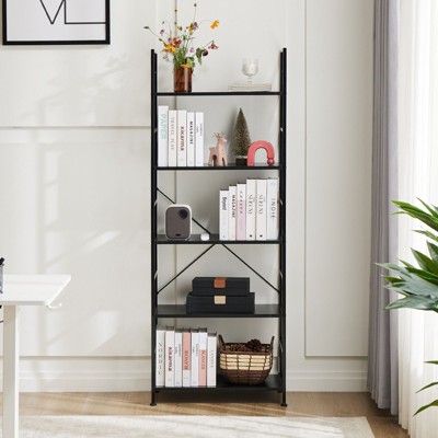 CAVINAS 5-Tier Bookshelf with Metal Frame,Modern Minimalist Display Storage Shelf for Living Room & Study,Waterproof & Anti-Scratch,62.2"H
