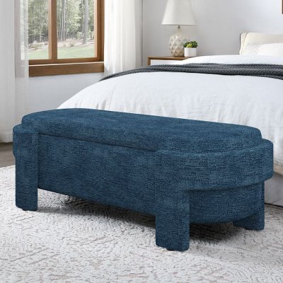 CAVINAS 51.5"L Linen Fabric Ottoman Bench with Storage & Hinged Lid,Chic End-of-Bed Storage Bench for Bedroom,High Density Foam Padded Seat,Dark Blue