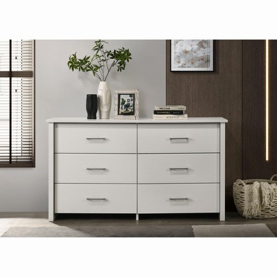CAVINAS 6 Fabric Drawers Dresser for Bedroom,Metal Frame Tall Storage Cabinet with Wood Top,Chest of Drawers for Bedroom,Entryway,Living Room,White