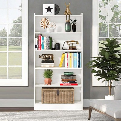 CAVINAS 6-Tier Rotating Bookshelf with Acrylic Panels,Modern Book Shelves with 360° Swivel Base,Floor Standing Bookcase for Living Room,Study,White