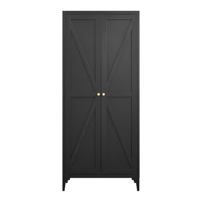 This all-steel pantry cabinet features a powder-coated finish (scratch/corrosion-resistant, easy to maintain) and chic striped doors with gold handles—blending elegance with durability.