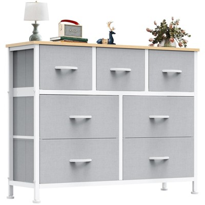 CAVINAS 7-Drawer Dresser for Bedroom, Multi-Purpose Chest of Drawers with Wooden Top & Metal Frame, Storage Cabinet for Closet/Entryway/Nursery,Gray