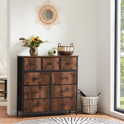 CAVINAS 9-Drawer Tall Dresser for Bedroom, Versatile Fabric Chest of Drawers, Storage Cabinet with Wooden Top for Closet/Entryway/Nursery, Oak