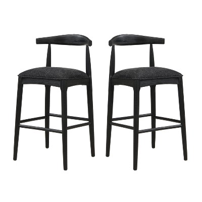 CAVINAS Bar Stools Set of 2, 26.5" Seat Height Counter Stools, Wooden Dining Chairs with Curved Backrest and Puffy Seat for Kitchen Island, Black