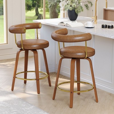 Product Name: CAVINAS Bar Stools Set of 2, Upholstered Counter Height Bar Stool Chair with Armrests and Metal Frame for Living Room, Dining Room, Beige