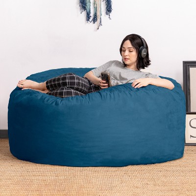 CAVINAS Bean Bag Chair with Easy-Clean Cover,Modern Lazy Sofa with 5ft Fabric Lounger,Faux Fur Bean Bag Chair Couch with Memory Foam,Navy