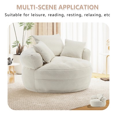 CAVINAS Bean Bag Chair with Ottoman, Faux Fur Sofa Chair with Footrest, Giant Cloud Couch for Reading, Resting, Watching TV, Khaki