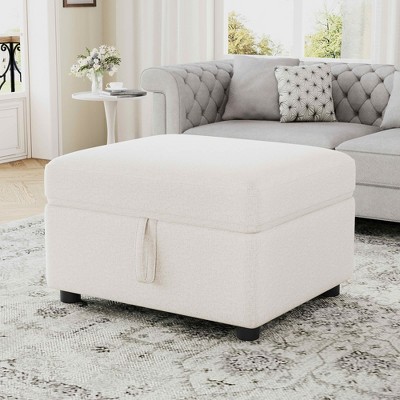 CAVINAS Charming Storage Ottoman Bench with Waffle Stitching,Fabric Footstool with Birch Wood Legs,End of Bed Bench for Living Room,Hallway,Brown