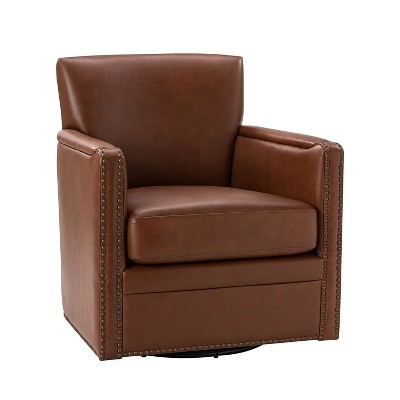 CAVINAS Chenille Upholstered Accent Chair with Metal Base Frame,Modern Swivel Chair with Removable Cushion for Bedroom,Reading Room,Brown