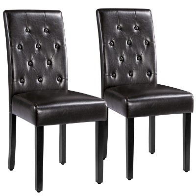 CAVINAS Contemporary Rolltop Dining Chairs with Button-Tufted Diamond Stitch and Rubberwood Legs, Set of 2, Black