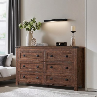 CAVINAS Farmhouse PB Storage Cabinet with 5 Drawers,Rustic Side Cabinet with USB Ports for Bedroom & Kitchen