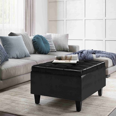 CAVINAS Faux Leather Storage Ottoman Bench with Tufted Diamond Detail,Upholstered Storage Ottoman,Storage Benches for Living Room,Bedroom,Black