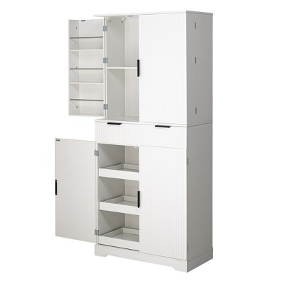 CAVINAS Black Fluted Kitchen Pantry Cabinet,Tall Cabinet with 3 Drawers,6 Door Shelves,1 Adjustable,Storage Cabinet for Diningroom,Office,Entryway