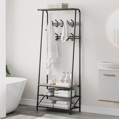 CAVINAS Freestanding Coat Racks with Bench and Shoe Storage,Hall Tree with 6 Hooks and Hinged Lid,Entryway Furniture for Living Room,Brown