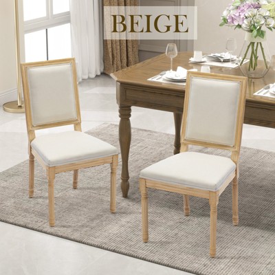 CAVINAS French Decor Dining Chairs Set of 2,Kitchen Chairs with Square Backrest & Solid Wood Frame,Dining Room Chairs for Kitchen,Living Room,Beige