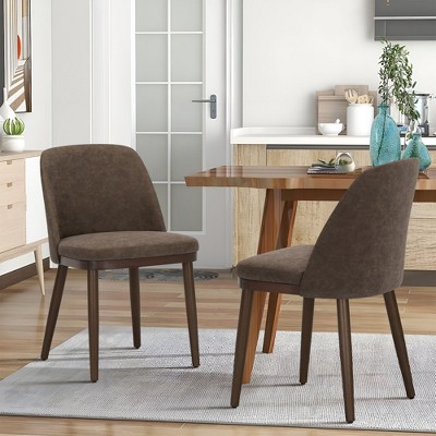 CAVINAS French Dining Chairs Set of 2 with Rattan Backrest & Linen Upholstered Kitchen Chairs with Wood Legs for Kitchen, Dining Room, Tan