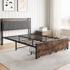 CAVINAS Platform Bed with Charging Station,Bed Frame with Storage Headboard,Box Spring Not Required,Brown/Black