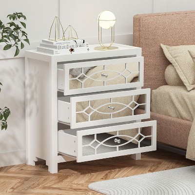 CAVINAS High Gloss Night Stand Elegant Nightstand Mirrored Bedside Table with Metal Handle and 2 Drawers for Bedroom, Living Room