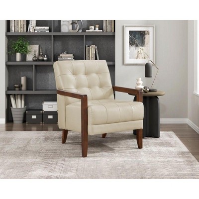 CAVINAS Leather Upholstered Accent Chair with Solid Wood Arms and Legs,Modern Arm Chairs for Bedroom,Reading Room,Beige