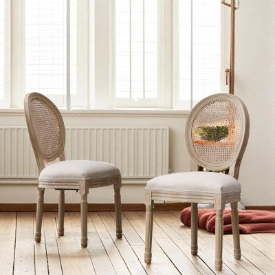 CAVINAS Linen Armless Living Room Chairs Set of 2,Dining Chairs with Square Rattan Backrest for Dining Room,Kitchen