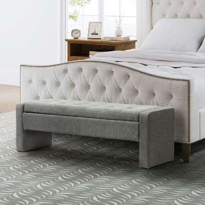 CAVINAS Linen Storage Ottoman Bench,Ottoman with Tufted Diamond Detail and Nailhead Trim for Living Room,Bedroom,Slate Grey
